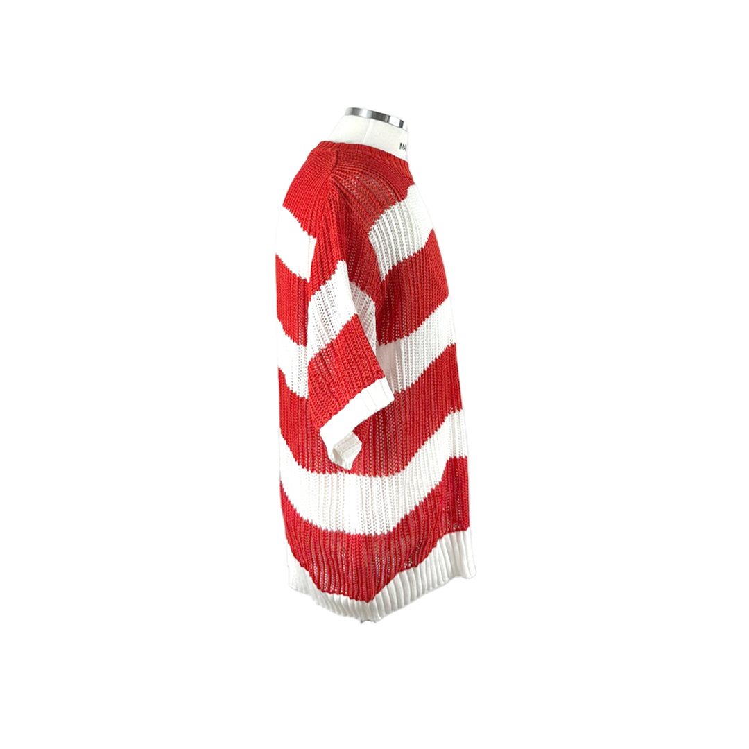 메종제이 레이 스트라이프 RED는 패브릭 아크릴 100% 소재로 제작되어 가볍고 부드러운 착용감을 제공합니다. 레드 컬러의 레이 스트라이프 디테일이 돋보이며, 베이직한 디자인으로 다양한 스타일에 활용할 수 있습니다. 루즈한 핏으로 편안한 착용감을 제공합니다.
