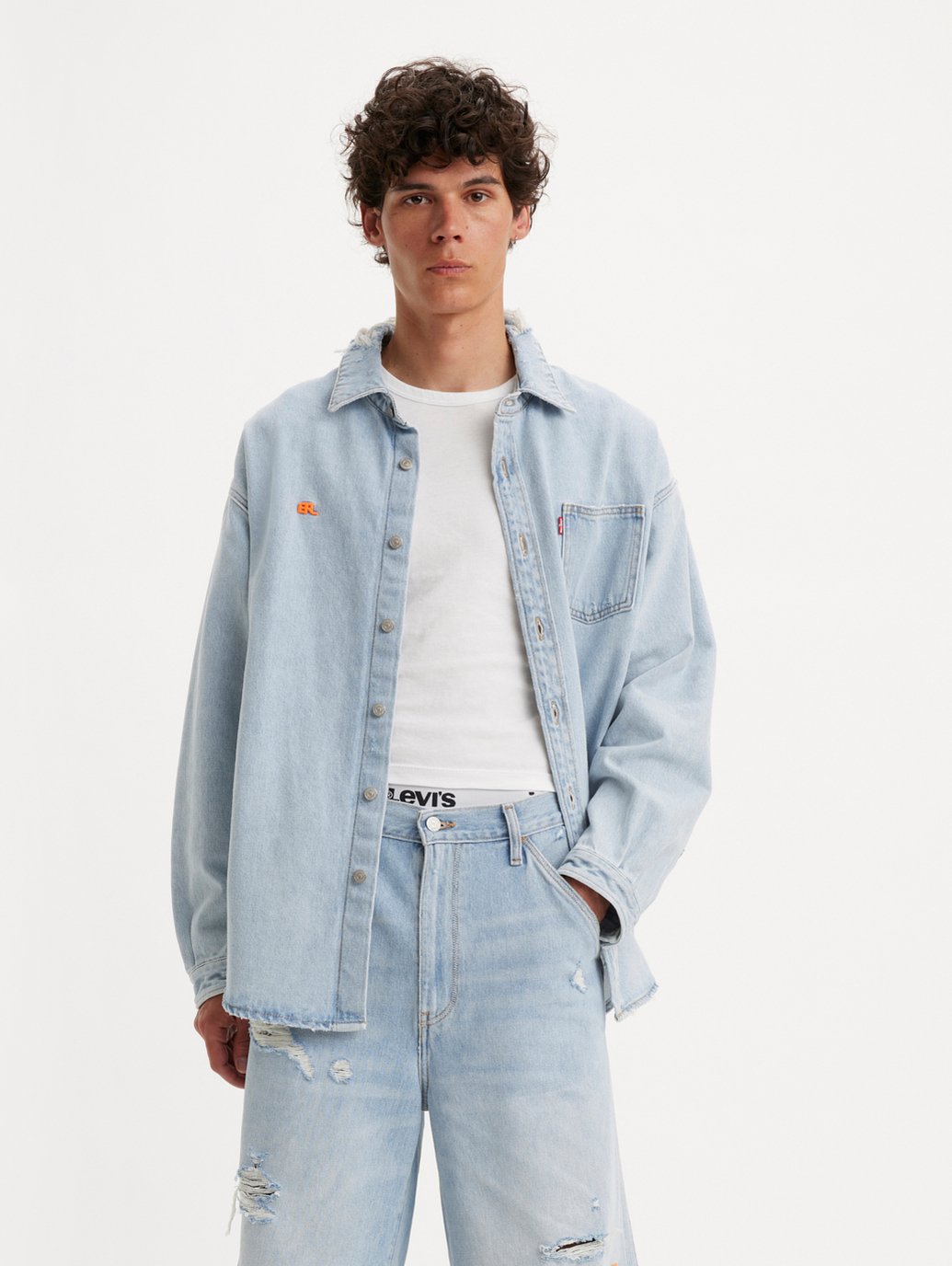 LEVI'S® x ERL 2023 F/W 시즌, 리바이스와 ERL의 첫 번째 콜라보레이션을 소개합니다. 이번 컬렉션은 햇빛에 바랜듯한 연청 색감의 디스트로이드 데님 제품들로 구성되었습니다. 리바이스의 아이코닉