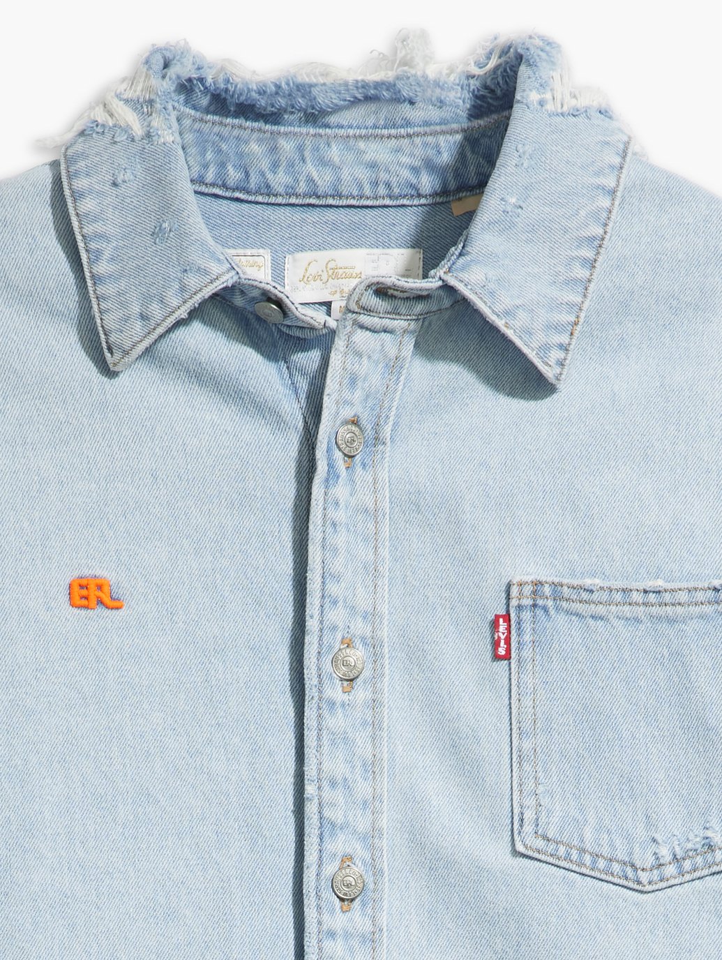 LEVI’S® X ERL 오버셔츠는 면 100% 소재로 제작되었습니다. 면 100% 소재는 부드럽고 편안한 착용감을 제공합니다.