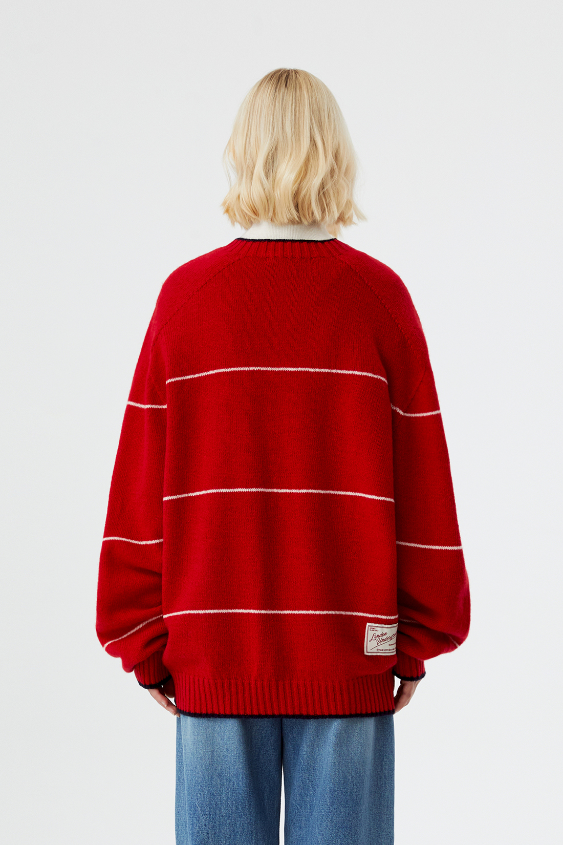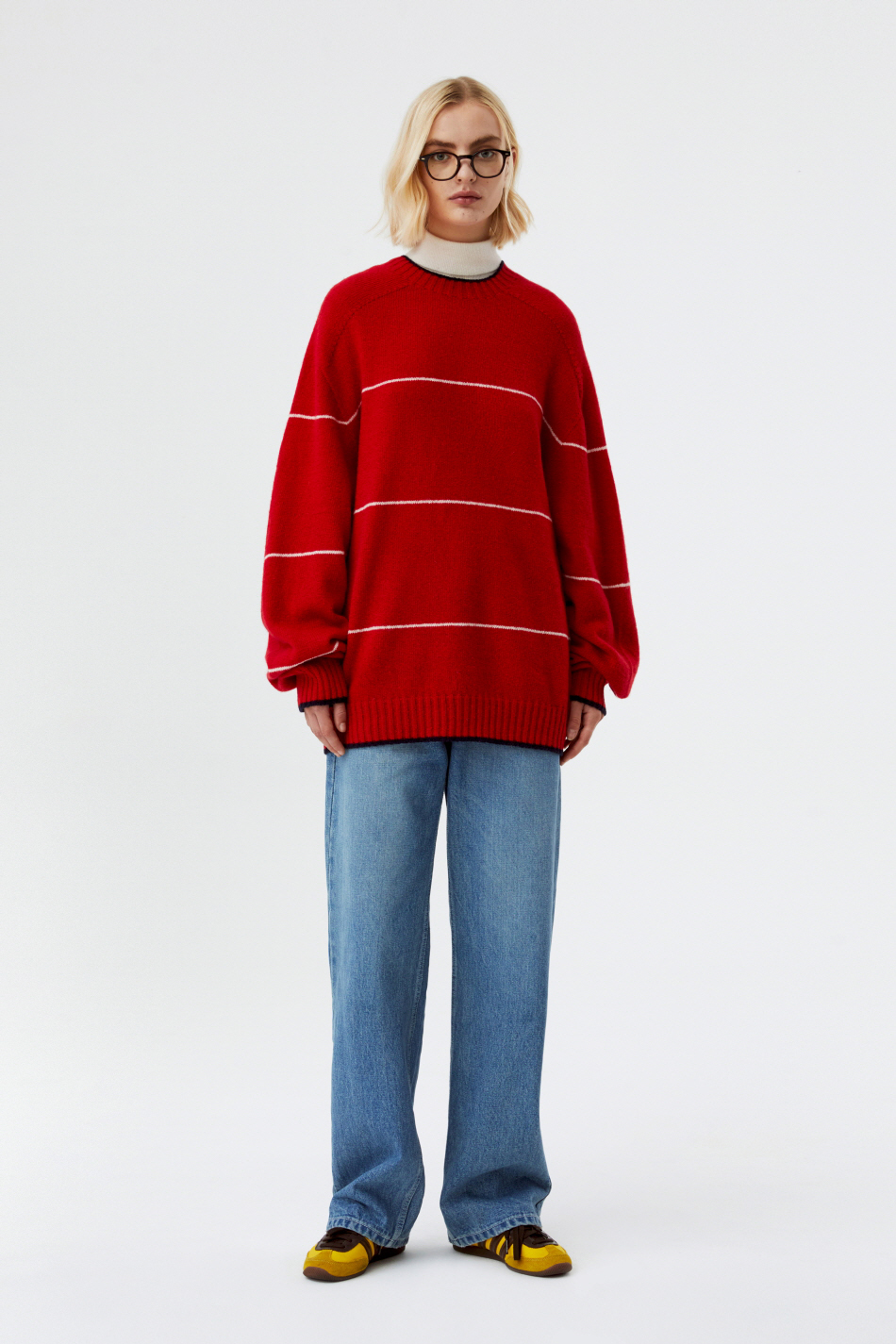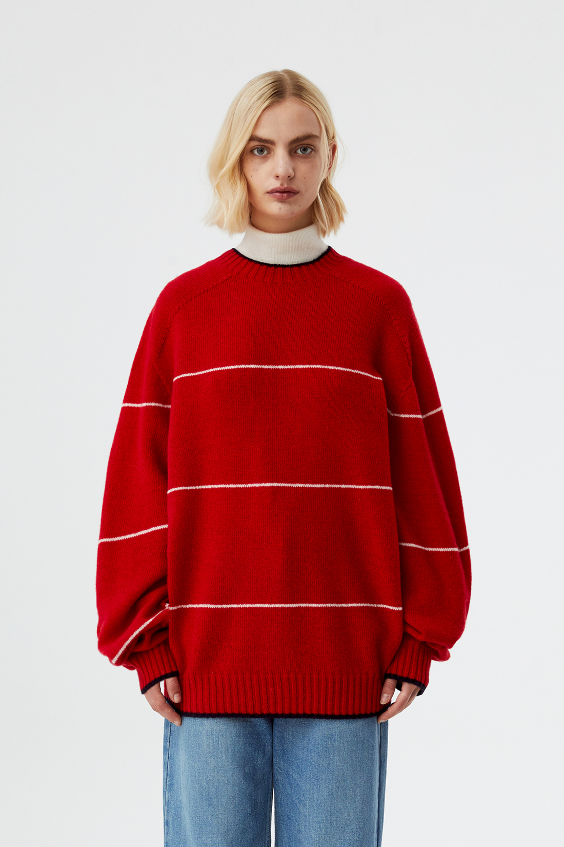 놀라운 토요일 282회 230923 한해 레드 핀 스트라이프 스웨터 옷 패션 브랜드 정보 - 런던 언더그라운드 LONDON UNDERGROUND Pin stripe sweater_Red