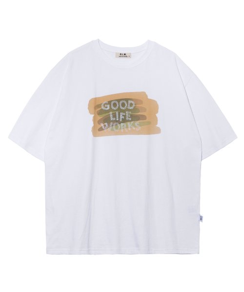 굿라이프웍스 GLW 오버핏 스케치 나염 반팔 티셔츠 는 굿라이프웍스의 2023년 S/S 컬렉션 제품으로, 스케치 나염이 특징인 오버핏 반팔 티셔츠입니다.