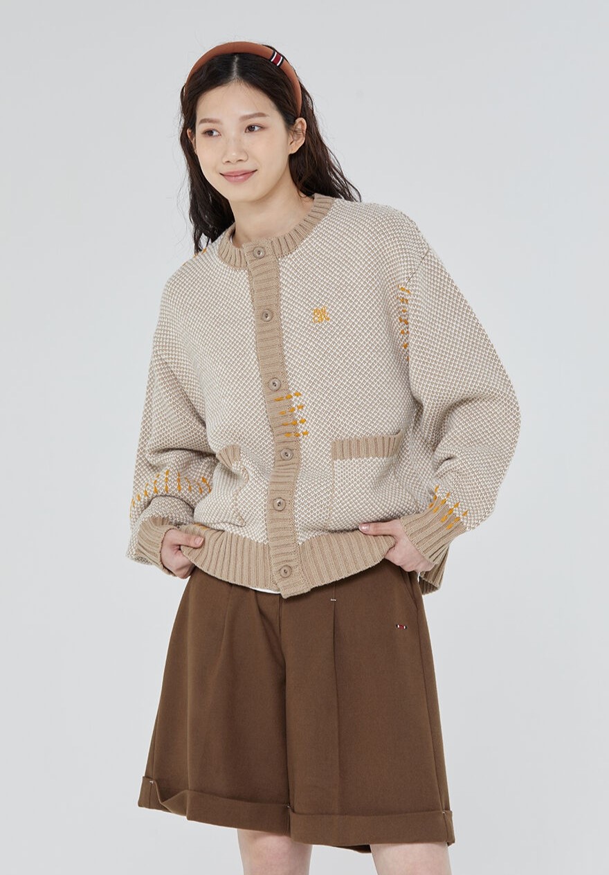 로맨틱크라운(ROMANTIC CROWN) HAND STITCH ROUND CARDIGAN_BEIGE.