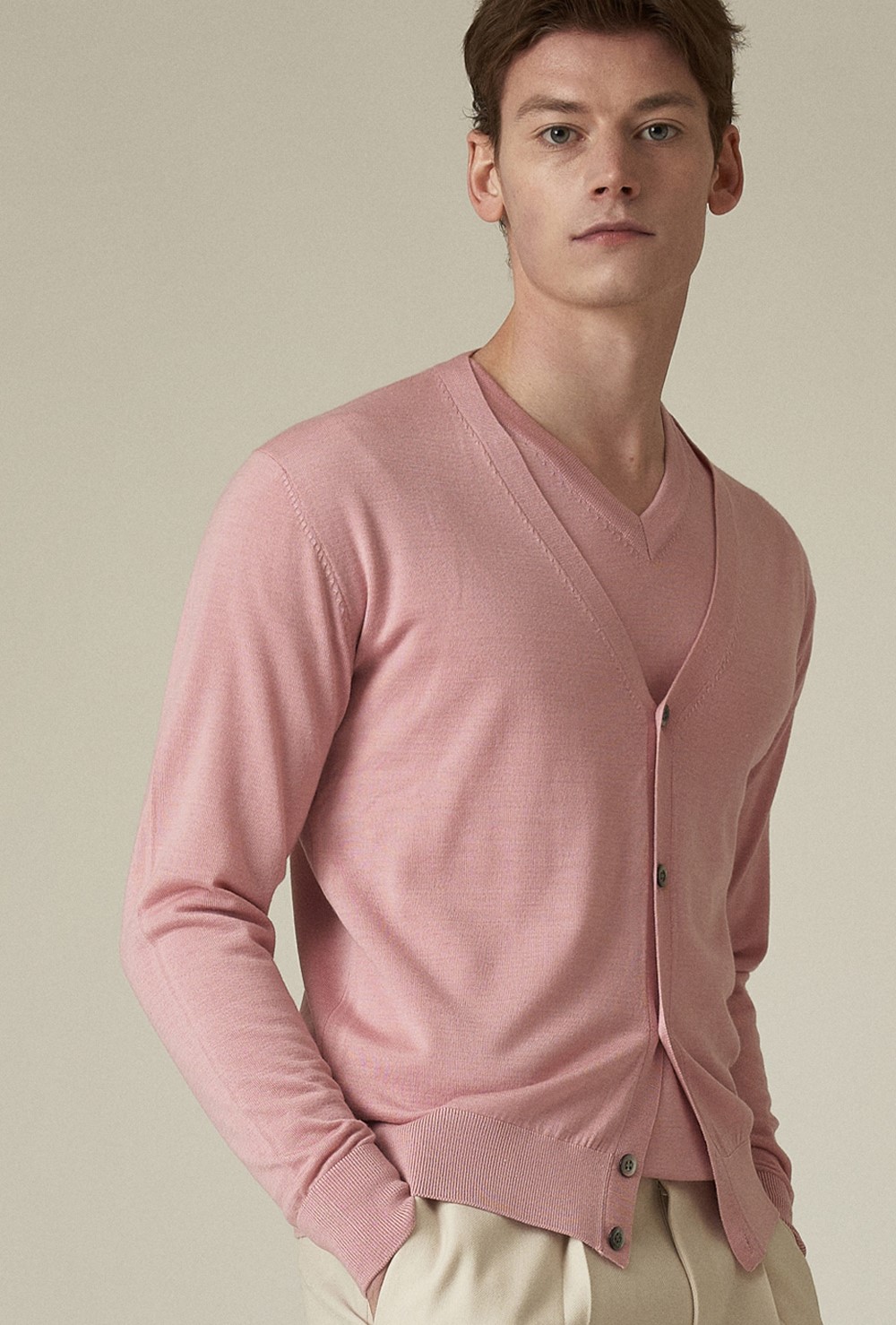 라디오스타 836회 윤현민 핑크 니트 브이넥 가디건 옷 패션 브랜드 정보 - 이올로 IOLO Silk Blended Calssic V-Cardigan_Pink