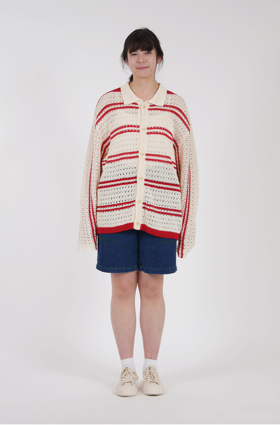 상품명 : Mesh Bag Texture Stripe Cardigan - Red