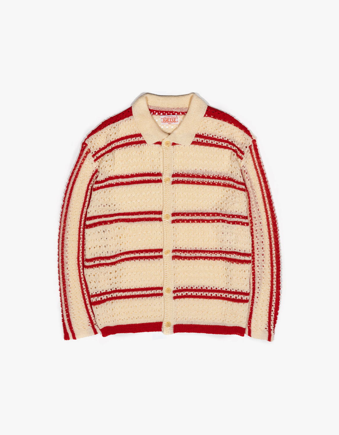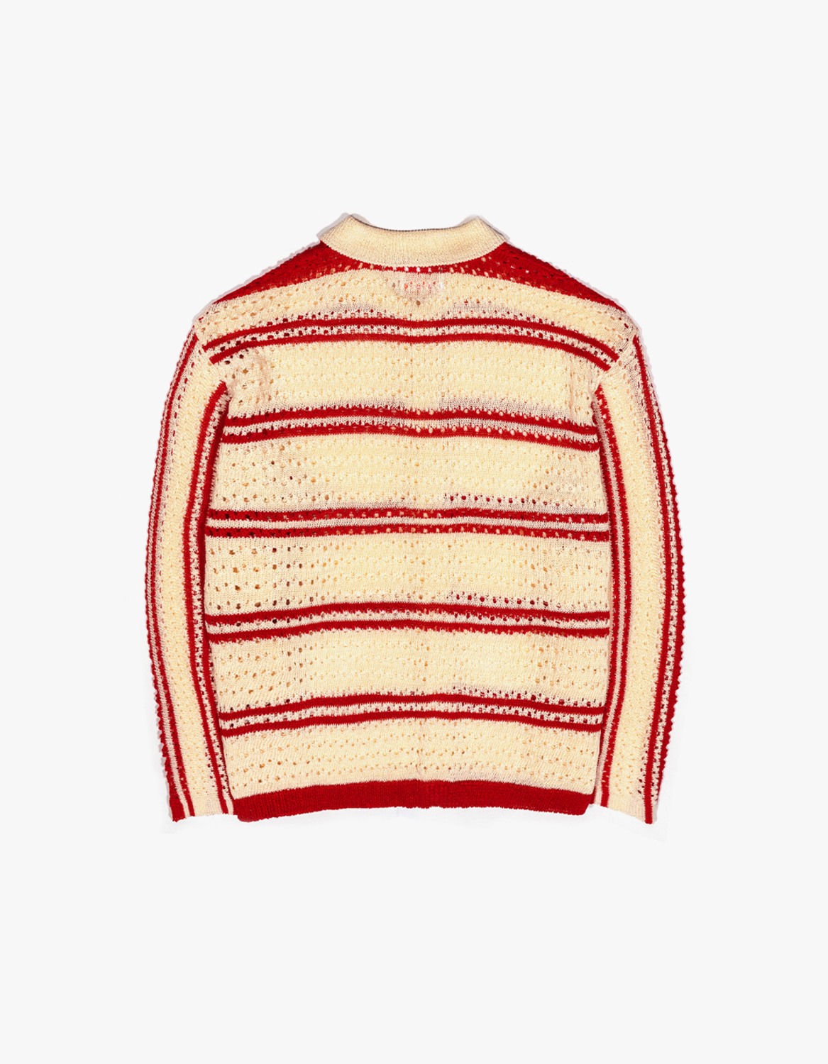 [IOEDLE] Mesh Bag Texture Stripe Cardigan - Red