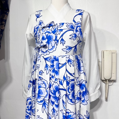 멜빵 철릭 원피스 청화백자 Free
