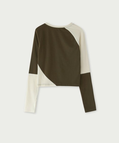 상품명 : DIAGONAL COLOR BLOCK LONG SLEEVE T-SHIRT - KHAKI/IVORY