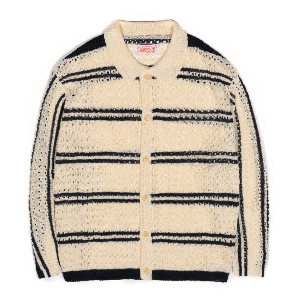 스트라이트 메쉬 펀칭 카라 니트 가디건_네이비