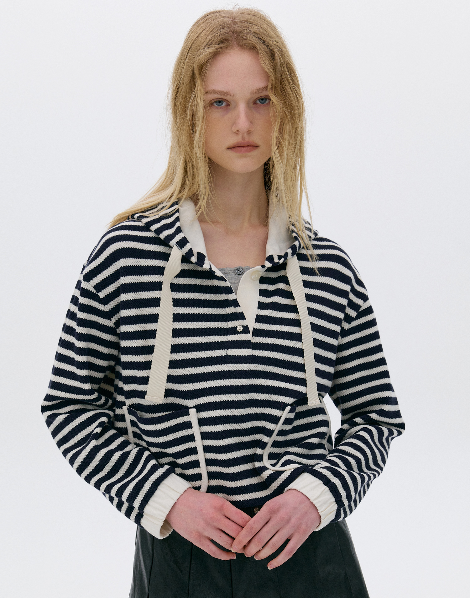 상품명 : 스트라이프 와플 후드 풀 오버 네이비 (AETS3E008N2)