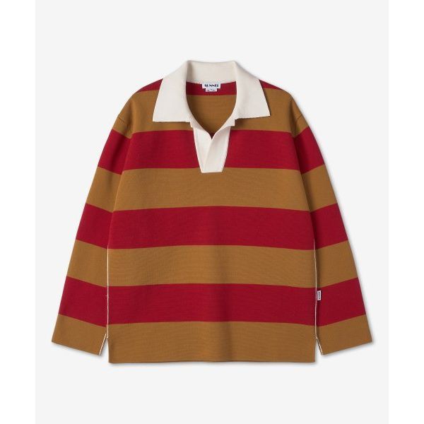 써네이 스트라이프 폴로 셔츠 브라운 버건디