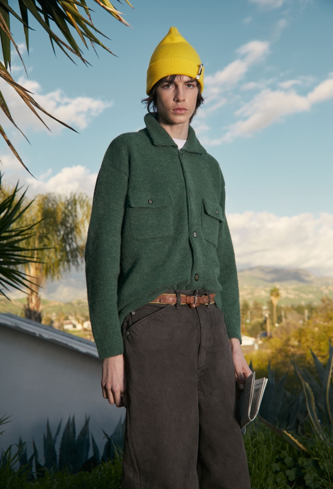 - 아크릴 47% 나일론 37% 알파카 7% 울 5% 스판 4% - 루즈 핏 - 그린 컬러 - 시보리 카라 두겹 처리 - 패치 포켓 디테일 - 로고 각인 골드 배색 단추