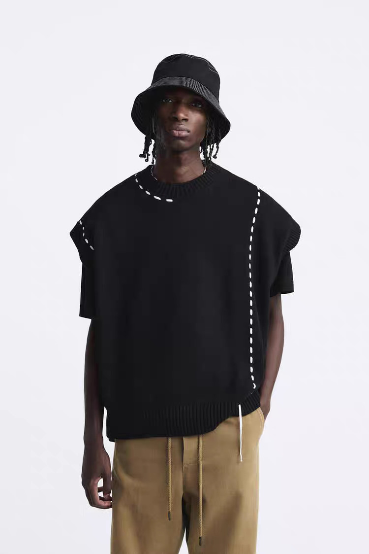 자라 남성 밴드 스티치 베스트 - 블랙, 캐주얼하고 스타일리시한 베스트