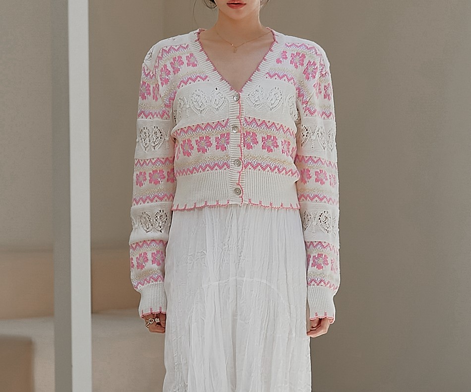 상품명 : 모이니 플라워 스캘럽 니트 가디건