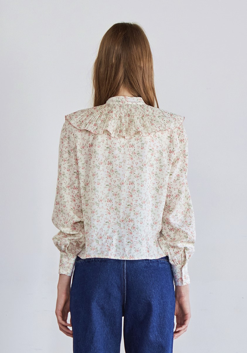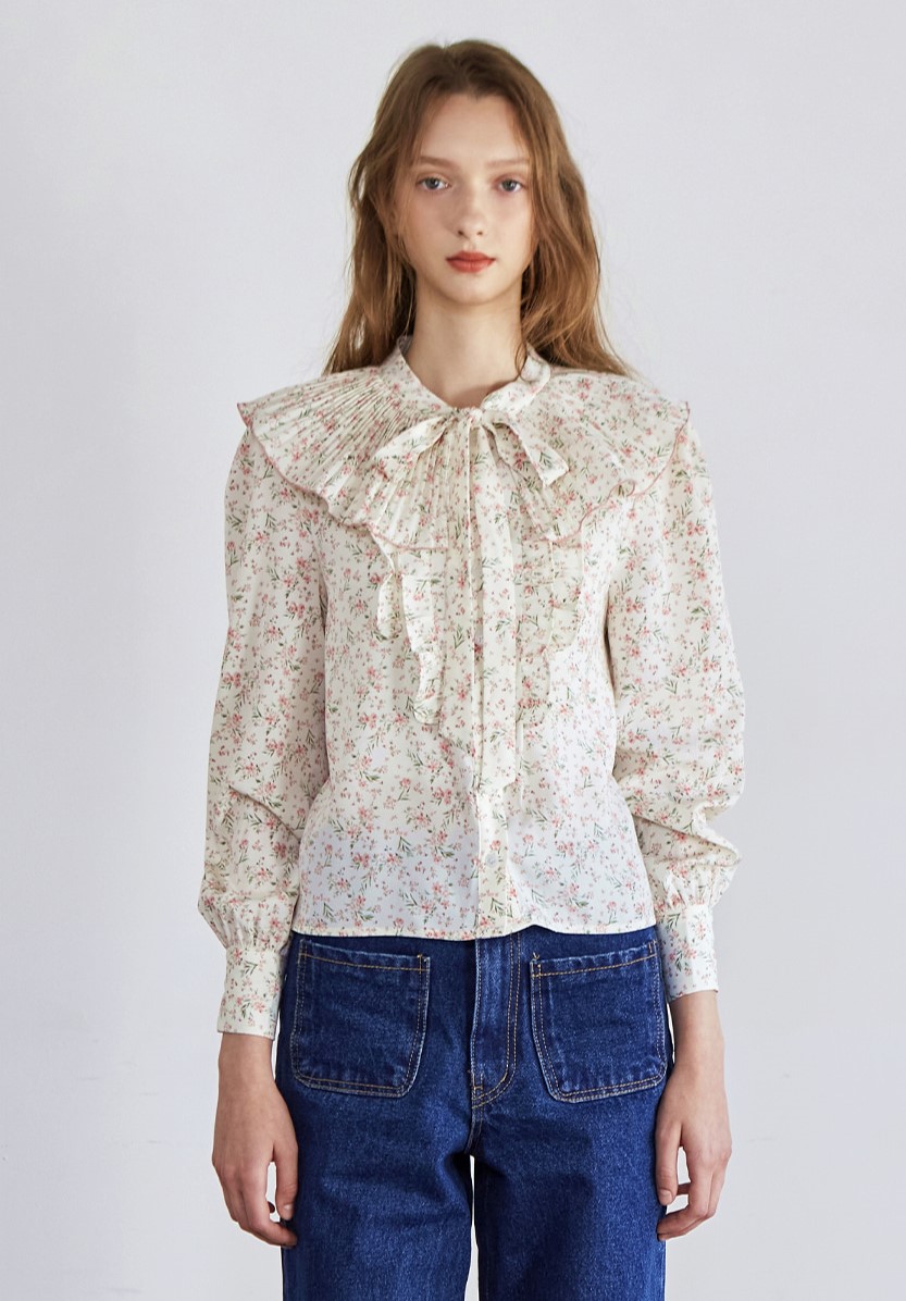 상품명 : Flower Pleats Ribbon Blouse