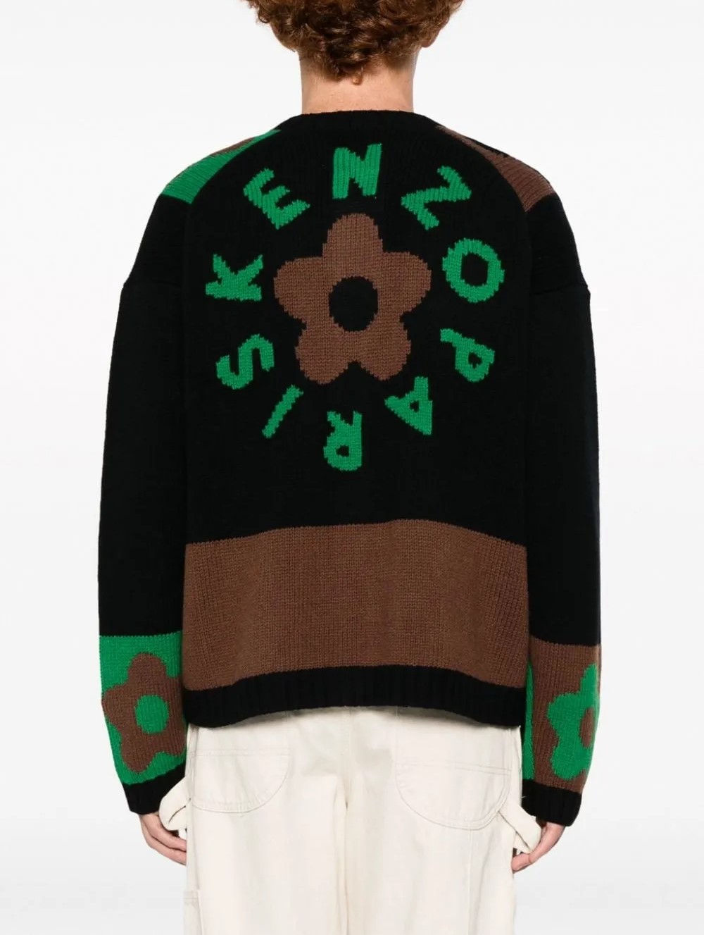 이 가디건은 Kenzo의 시그니처 제품으로, 인타르시아 기법으로 플로럴 패턴을 짜넣은 것이 특징입니다. 울 100% 소재로 제작되어 따뜻하고 부드러운 착용감을 자랑합니다.