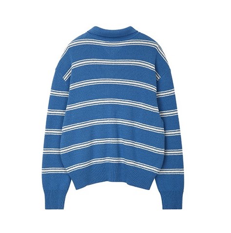 상품명 : UNISEX OPEN COLLAR KNIT CARDIGAN BLUE STRIPE