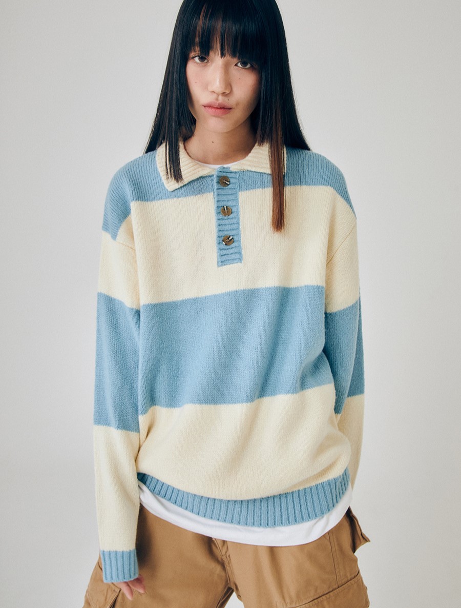 상품명 : VSW Stripe Polo Knit Sky Blue