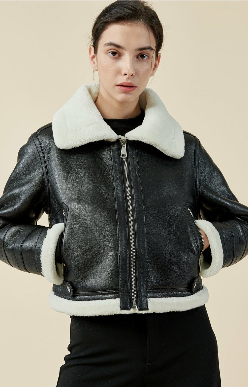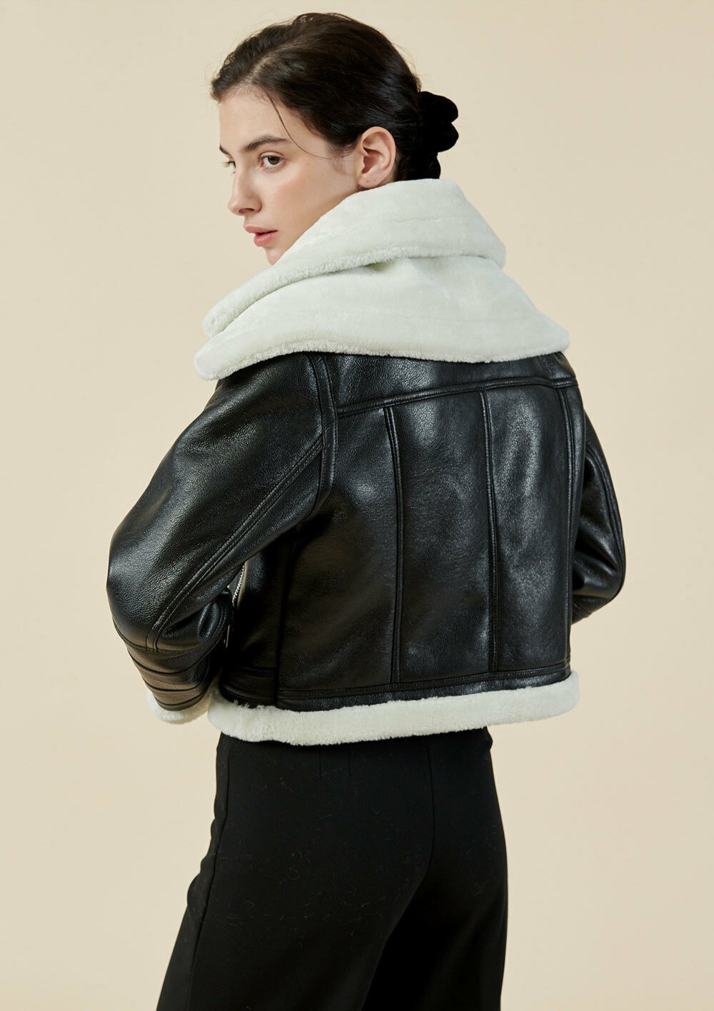 [LeftSeoul 레프트서울] 더블 칼라 크롭 무스탕 자켓 [블랙]