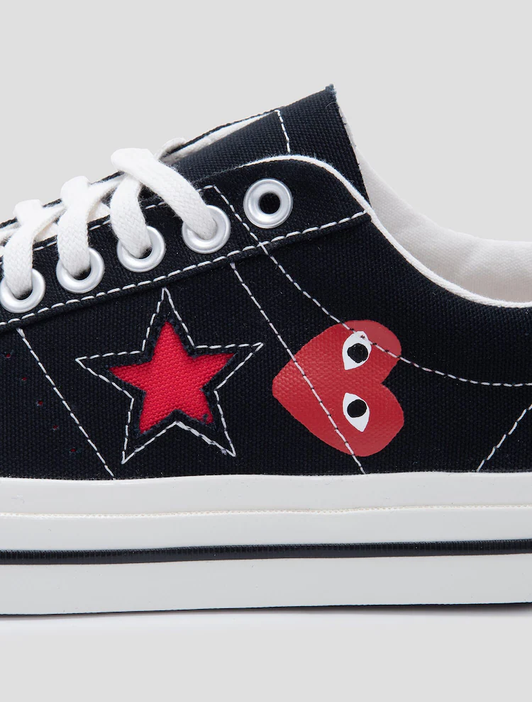 PLAY COMME DES GARCONS Red Heart One Star - Black은 PLAY COMME DES GARCONS의 인기 모델인 One Star에 레드하트를 더한 스니커즈입니다. 클래식한 원스타 모델에 PLAY의 감각적인 디자인이 더해져 유니크하면서도 스타일리시한 제품으로 완성되었습니다.
