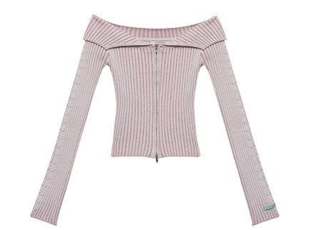 상품명 : 멀티컬러 오프숄더 집업 니트