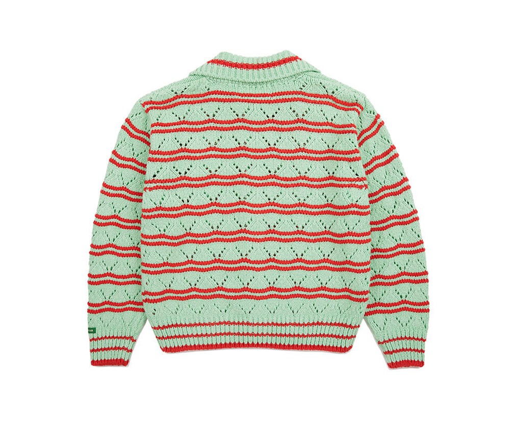 Green Butter Women Stripe Skashi Collar Cardigan Melon