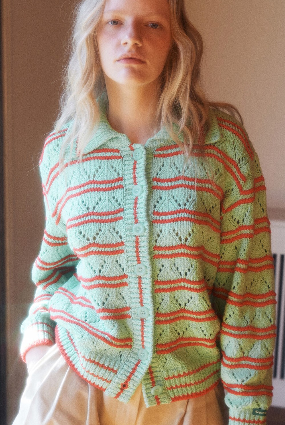 상품명 : Women Stripe Skashi Collar Cardigan Melon