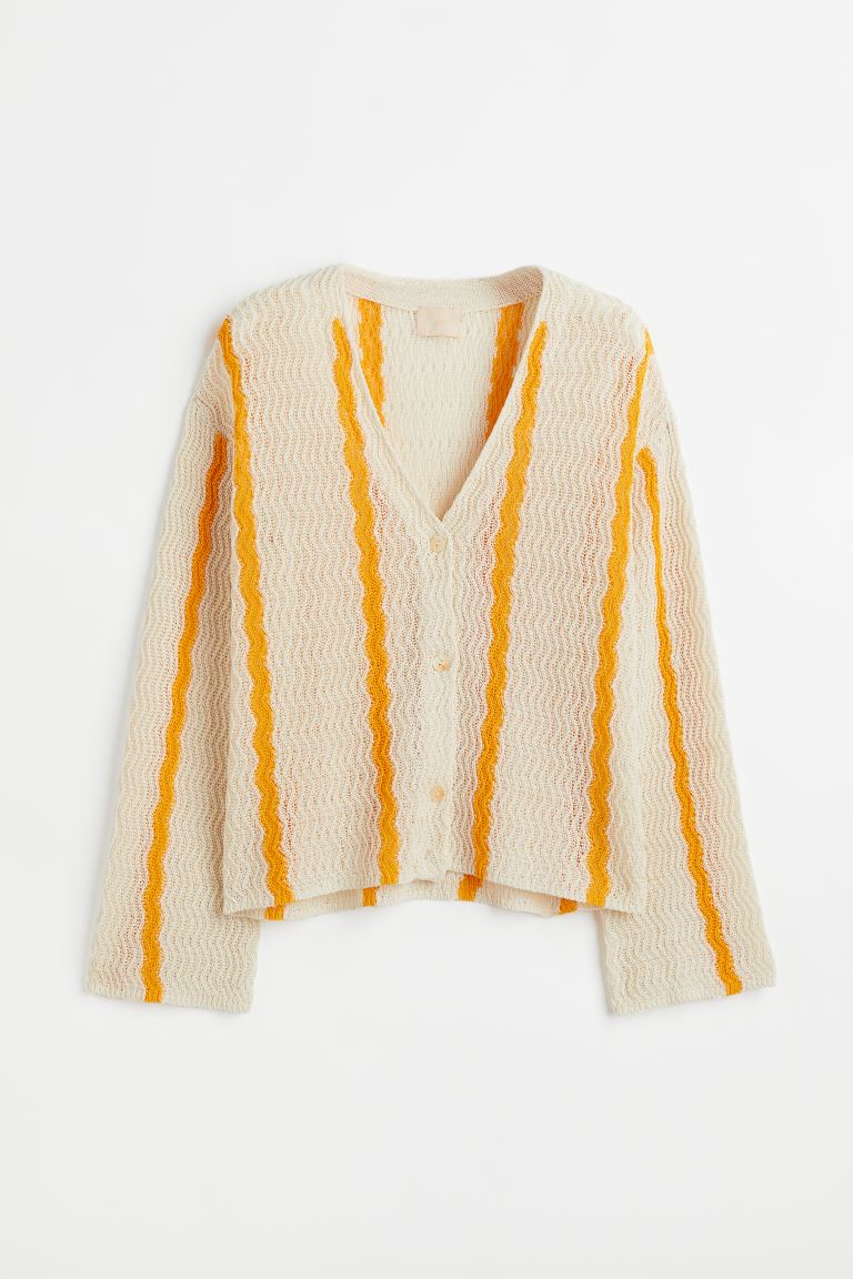 코튼 니트 가디건 - 화이트/스트라이프 - 여성 | H&M KR