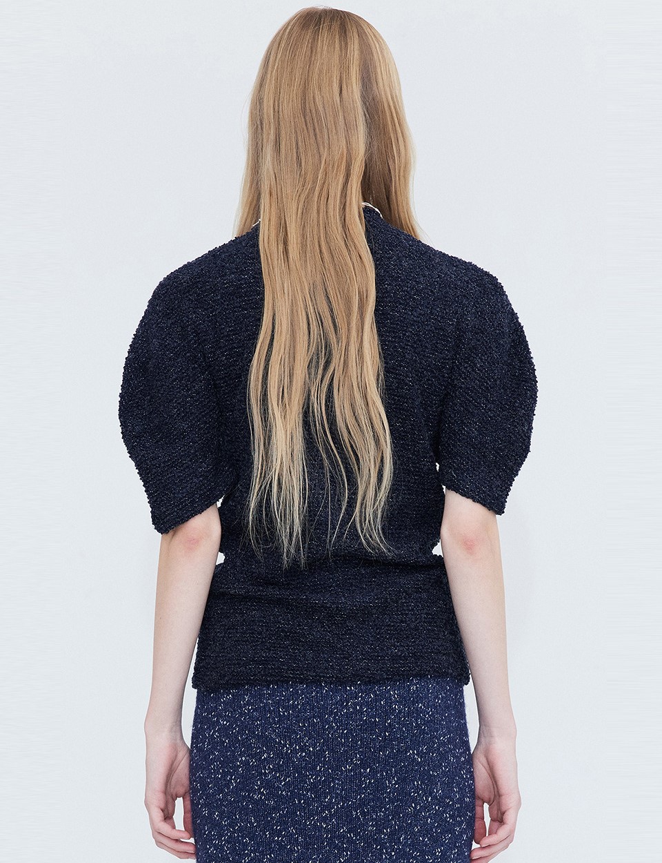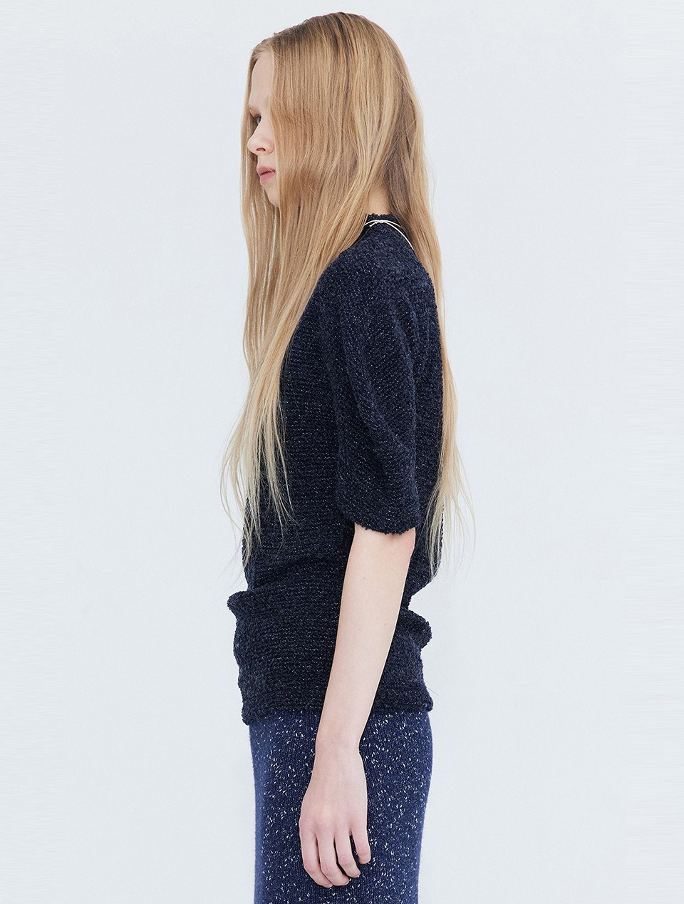 분더캄머(WNDERKAMMER) Boucle Half neck T 는 부클원단으로 제작된 네이비 색상의 하프 넥 티셔츠입니다.