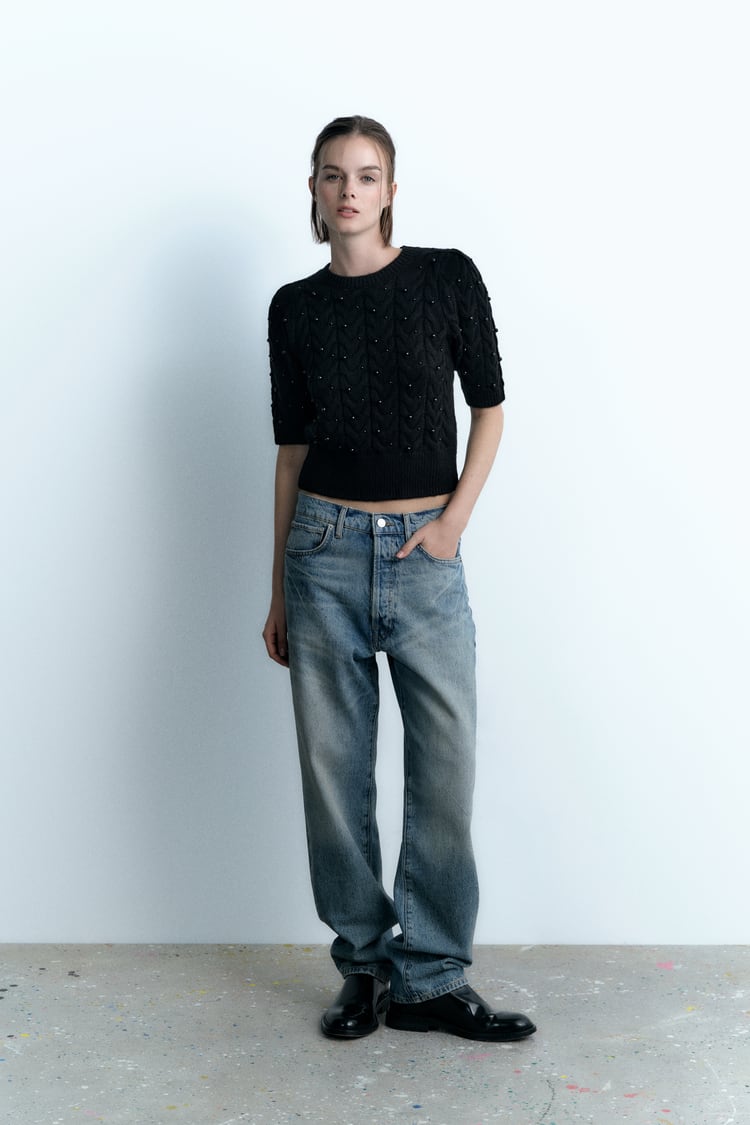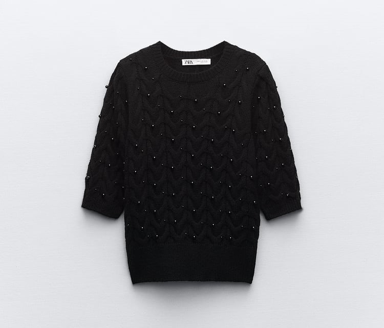 자라 펄 니트 스웨터 블랙은 고급스러운 펄이 들어간 니트 스웨터입니다.