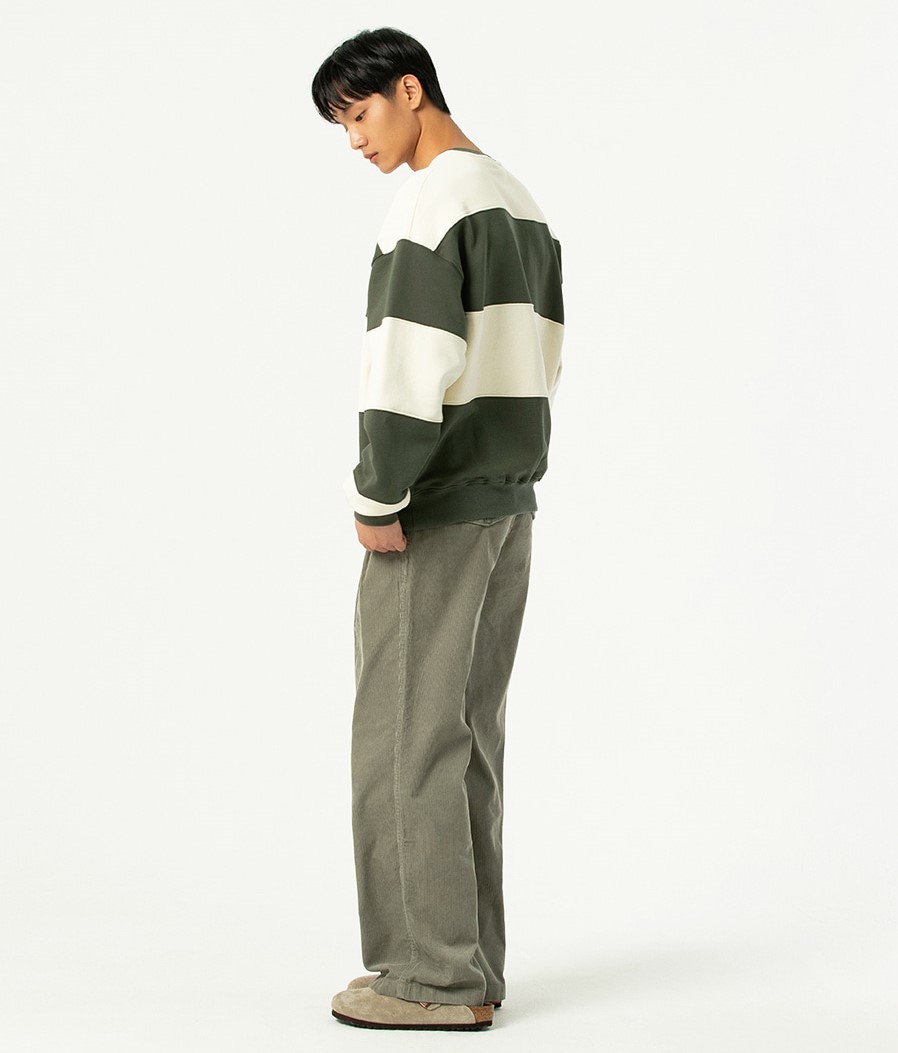 컬러 블록 맨투맨 카키