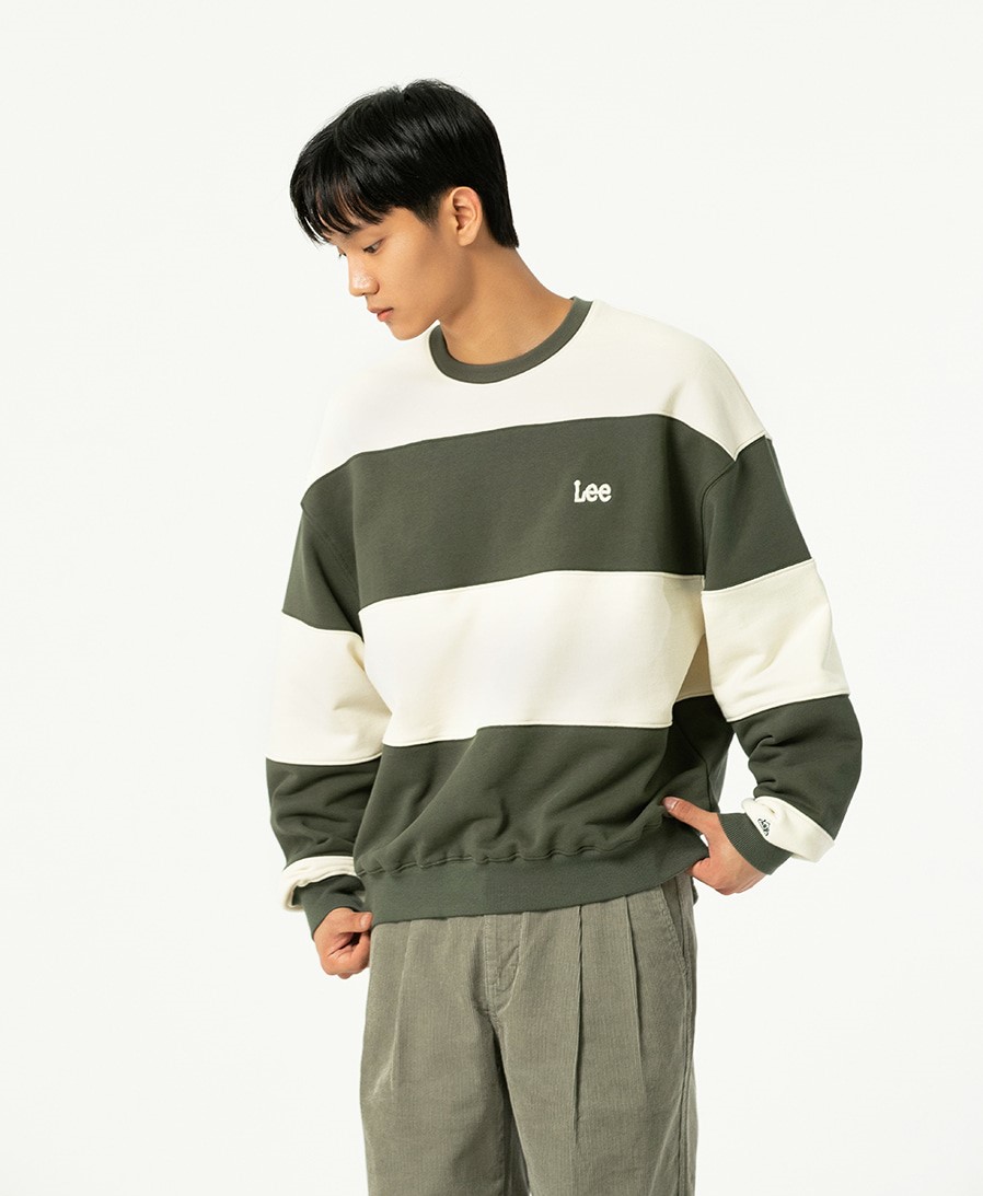 LEE 컬러 블록 맨투맨 카키는 컬러 블록 디자인으로 포인트를 준 맨투맨입니다.