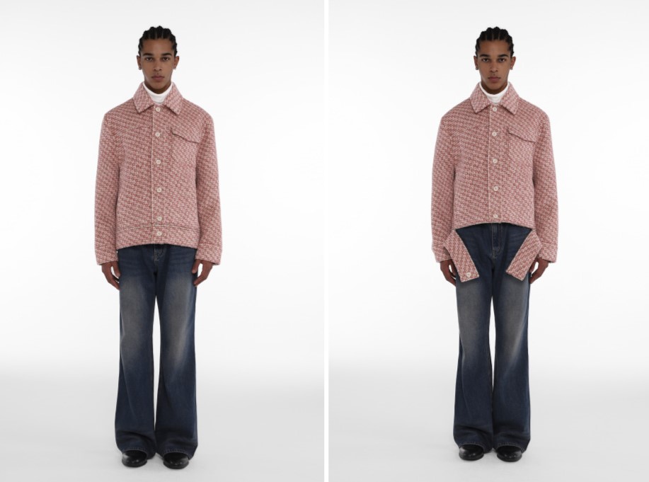 언지미크의 투톤 알파카 울 재킷은 핑크와 브라운의 우아한 컬러 블렌드가 돋보이는 제품입니다.