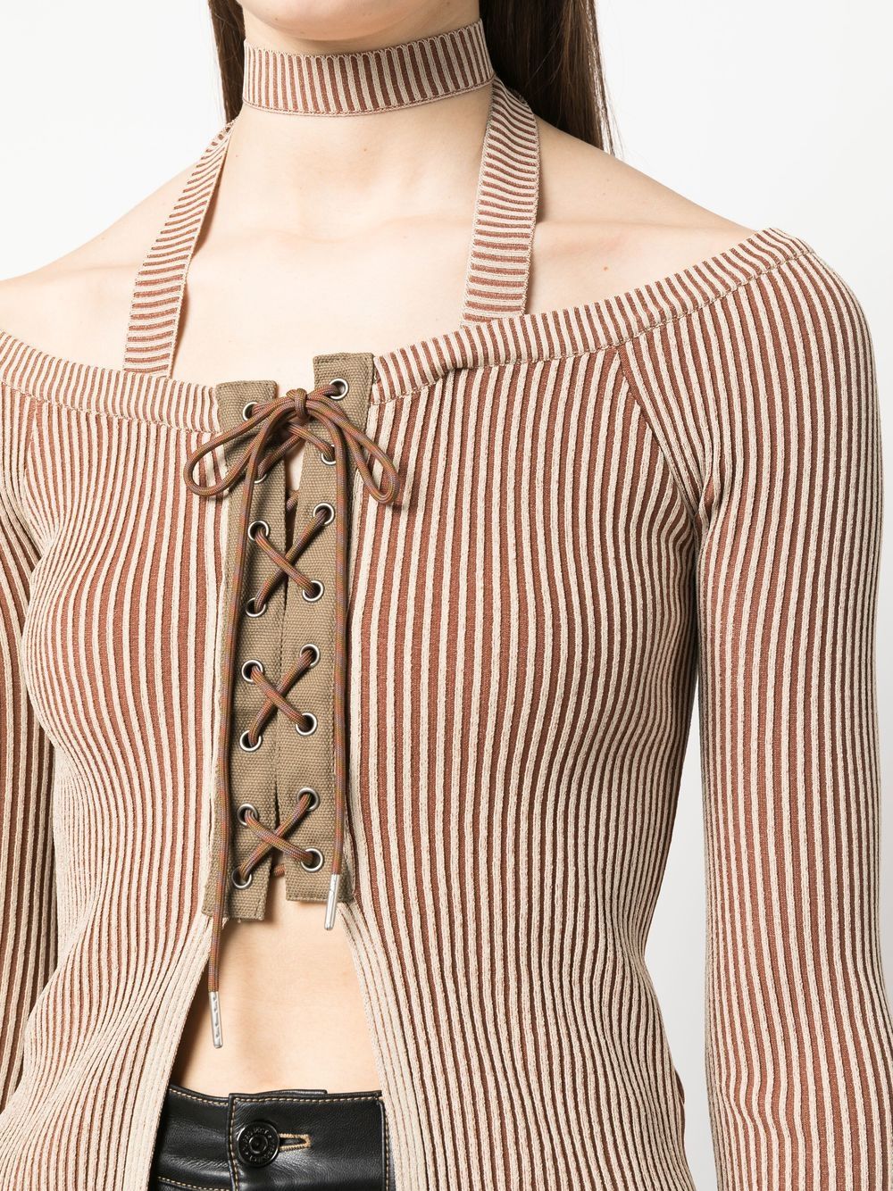 앤더슨 벨 오프숄더 홀터 넥 탑은 과감한 디자인으로 시선을 사로잡는 니트웨어입니다.