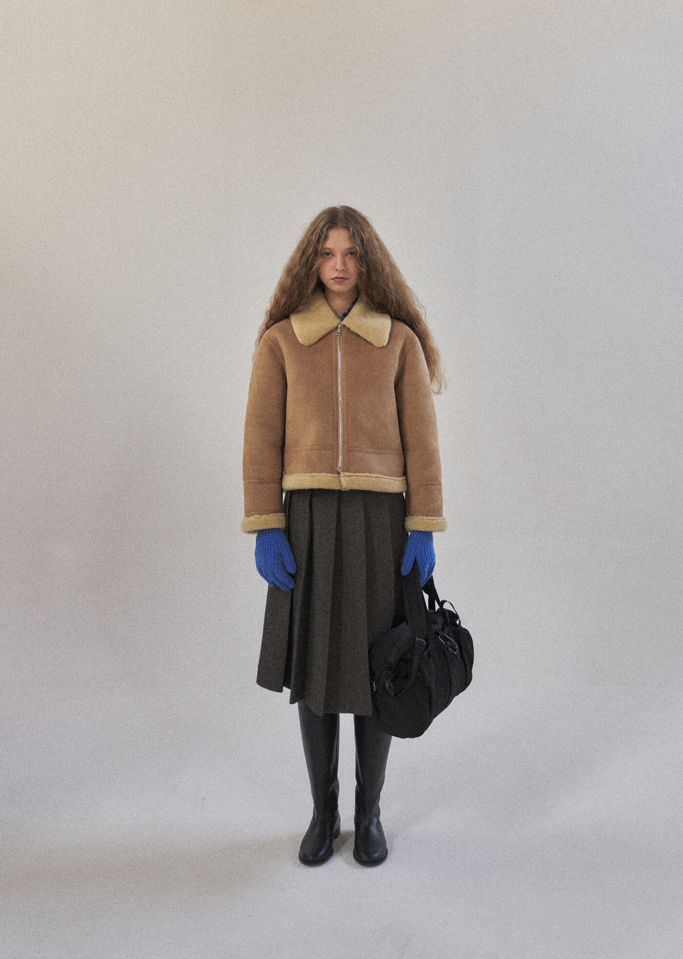 퍼는 울 소재로 제작되어 따뜻하고 고급스러운 느낌을 더해줍니다.