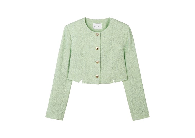[NEUL 늘] Tropical Slit Crop Tweed Jacket_Light Green