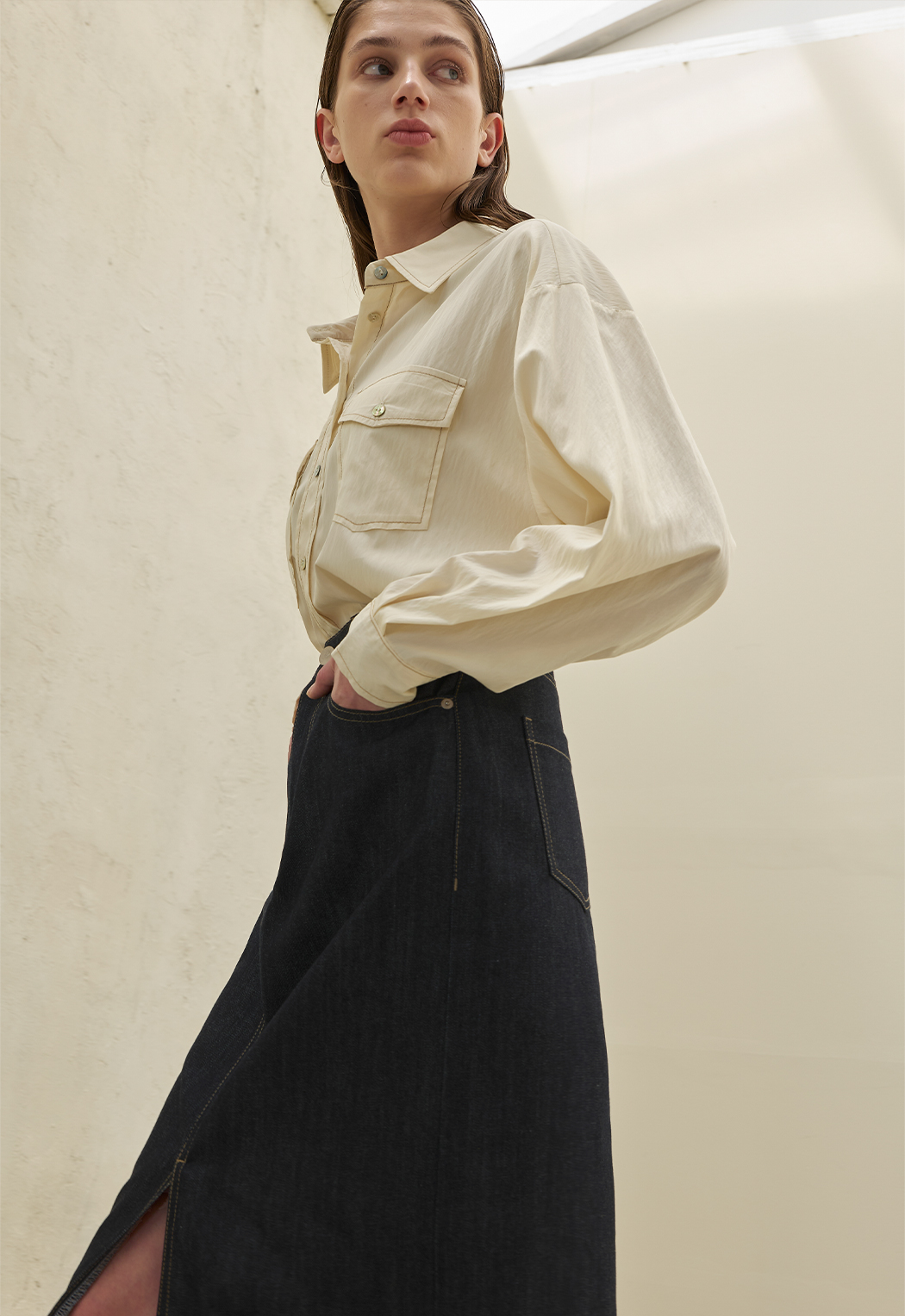 아틀리에 나인 클래식 스티치 포켓 셔츠는 베이직한 디자인과 심플한 디테일이 특징입니다.