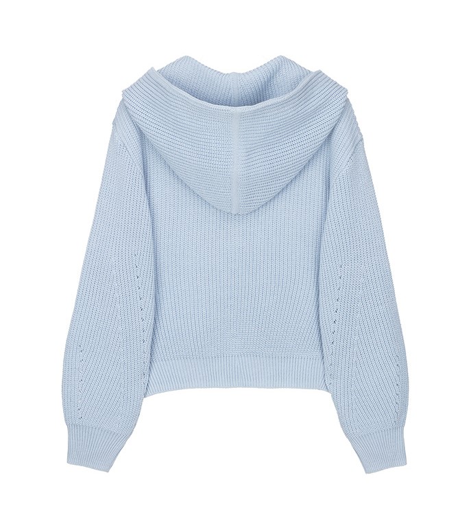 '하프 지퍼 후드 니트'는 면 100% 소재로 제작되어 부드럽고 편안한 착용감을 제공합니다.