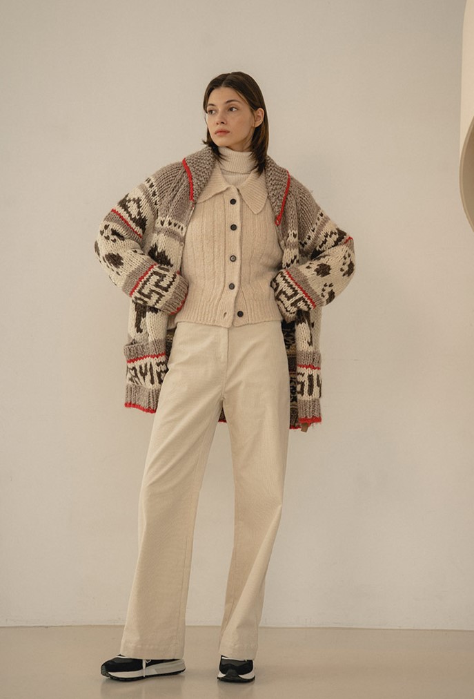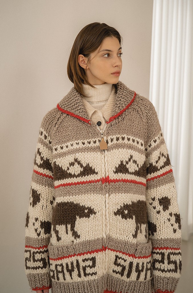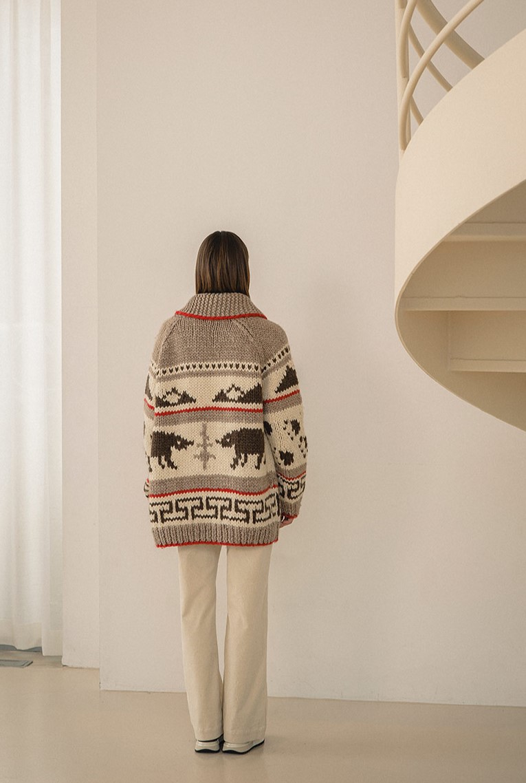 시야쥬의 SIOT4057 cowichan handmade sweater는 캐나다의 전통 수공예 코위찬 니트로 따뜻하고 고급스러운 룩을 완성하기에 제격입니다.