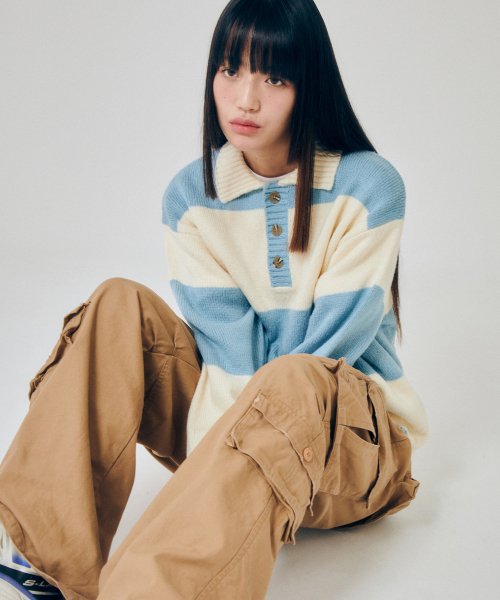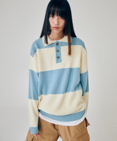 제품분류 : 상의 > 니트/스웨터 브랜드 : 비전스트릿웨어(VISION STREETWEAR) 제품번호 : VS2203KT01SB 제품 : VSW Washable Stripe Polo Knit Sky Blue - 59,400 원산지 : 대한민국