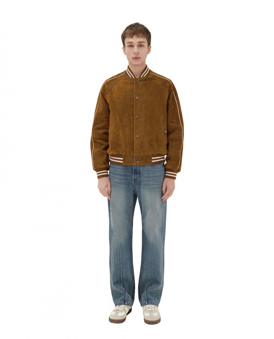 언지미크(UNGIMMICK) Piping Suede Stadium Jacket / Goat skin (Cognac) - 사이즈 & 후기 | 무신사