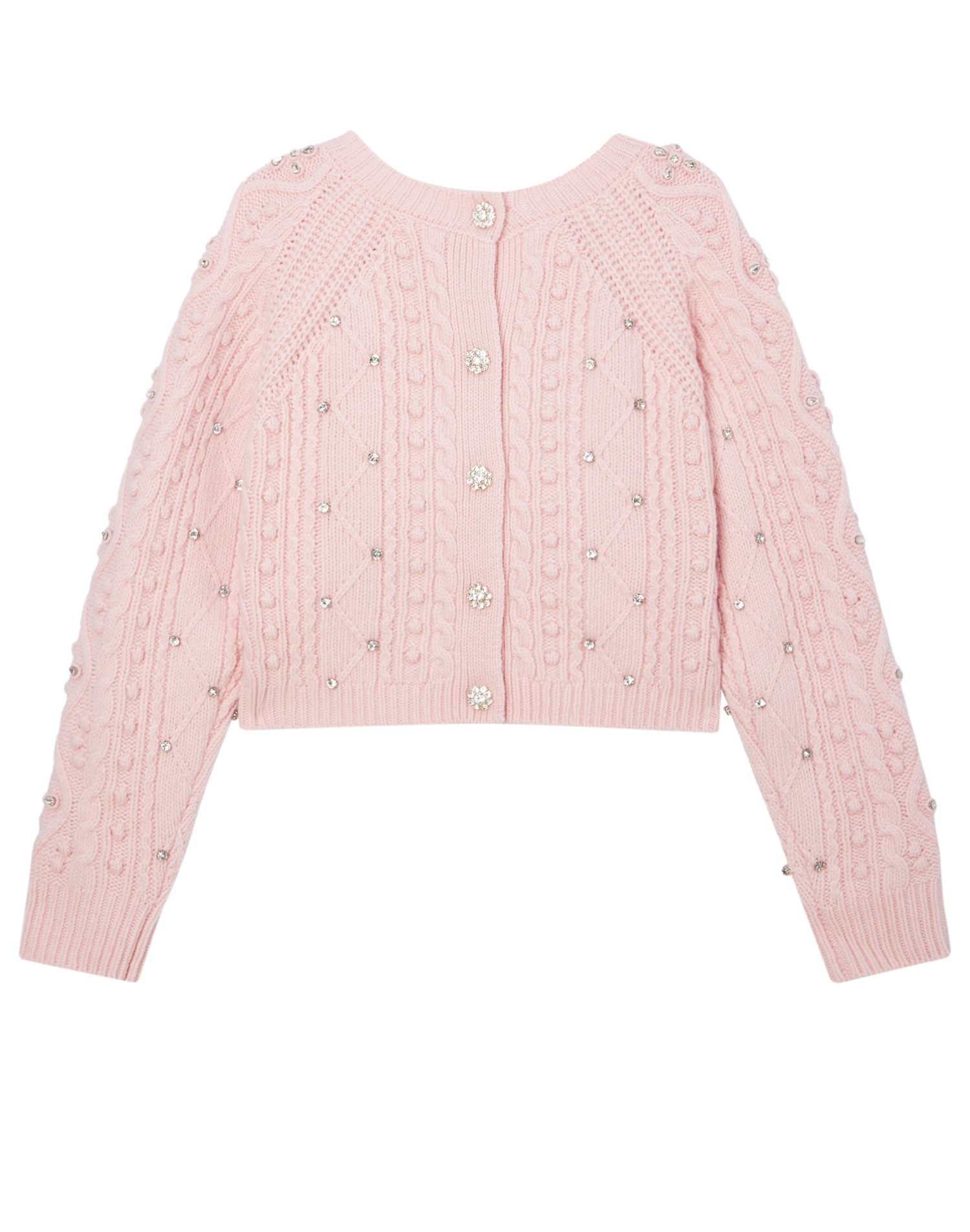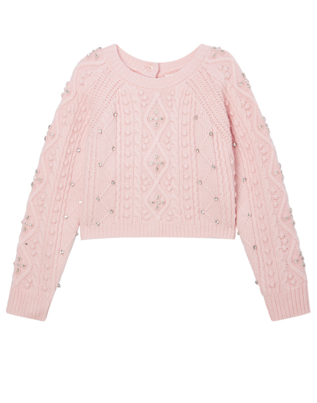 추운 겨울, 우아한 분위기를 연출하고 싶다면 바쉬의 핑크 크리스탈 장식 울 니트를 추천합니다.