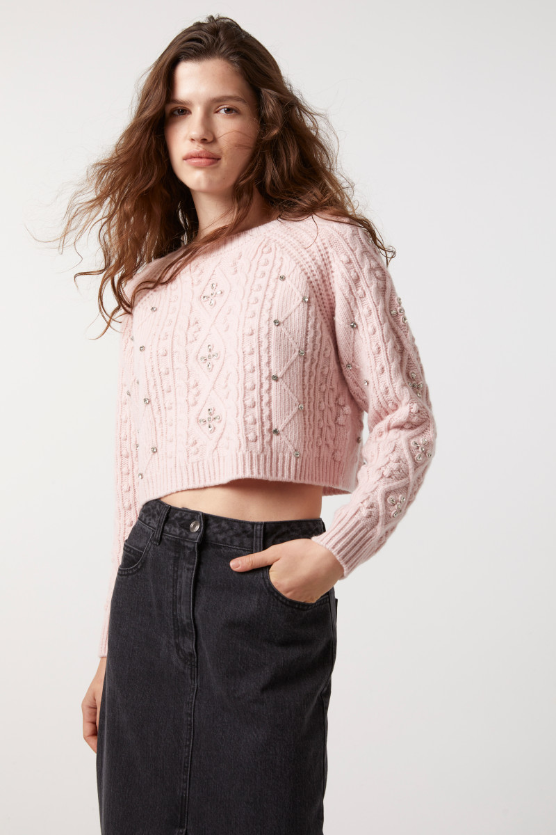 품명: 핑크 크리스탈 장식 울 니트 (Pink Crystal Decoration Wool Knit)