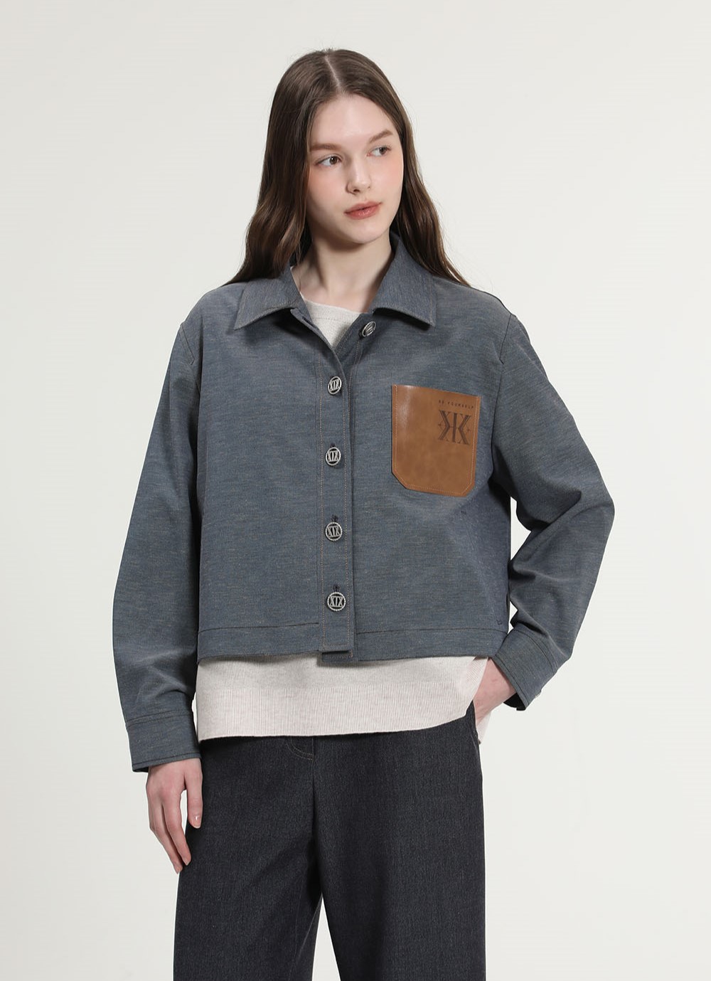 데님 소재의 특유한 질감과 워싱이 세련된 느낌을 주며, 셔츠형 디자인으로 포멀한 느낌도 낼 수 있습니다.