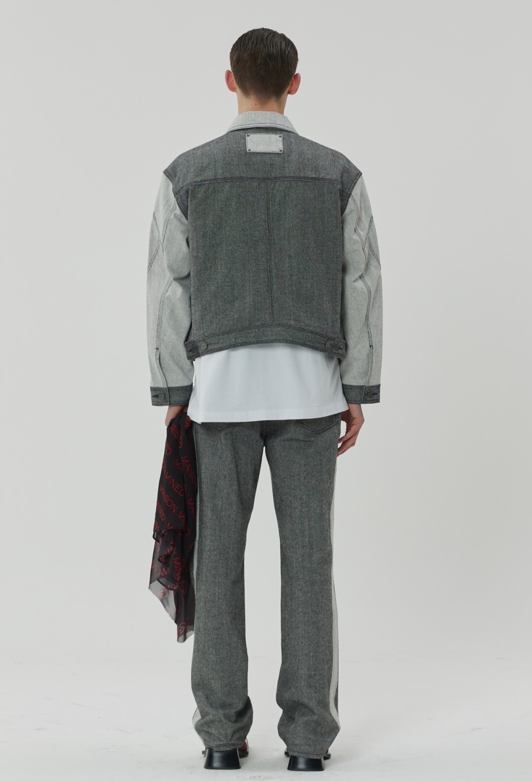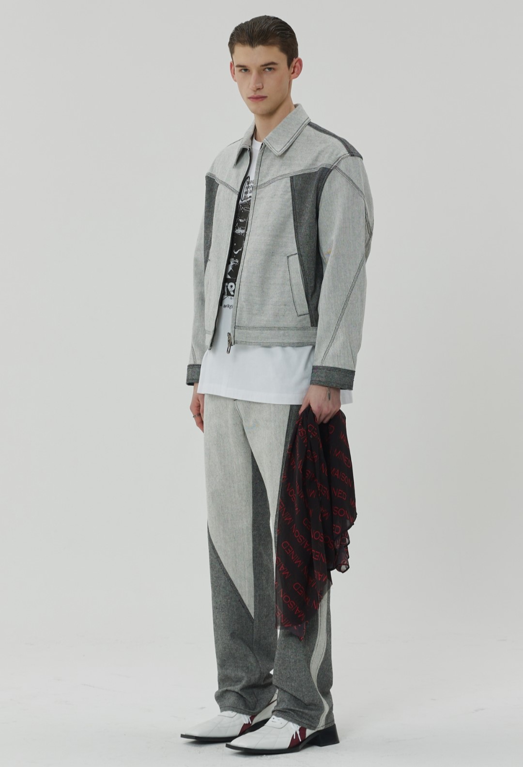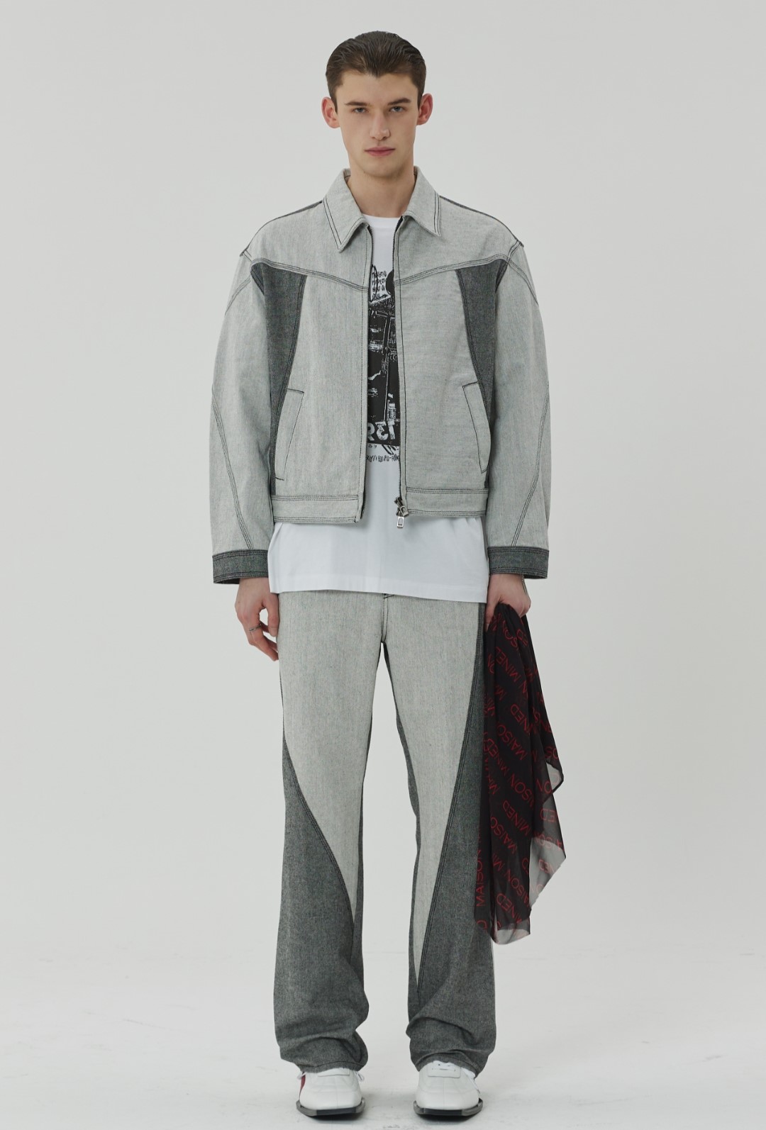슬랙스의 포멀한 느낌과 체스 레이서 데님 자켓의 세련된 느낌이 어우러져, 격식 있는 자리에서도 활용하기 좋은 스타일을 연출할 수 있습니다.