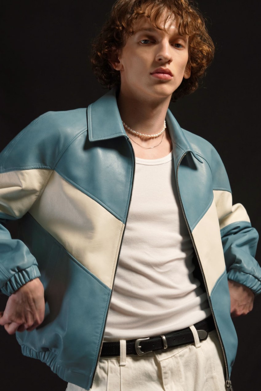 제품분류 : 아우터 > 레더/라이더스 재킷 브랜드 : 언지미크(UNGIMMICK) 제품번호 : UG23SS-LL03SB 제품 : Racing Two Way Bomber Jacket / Lamb skin (Sky Blue) - 440,000 원산지 : KOREA