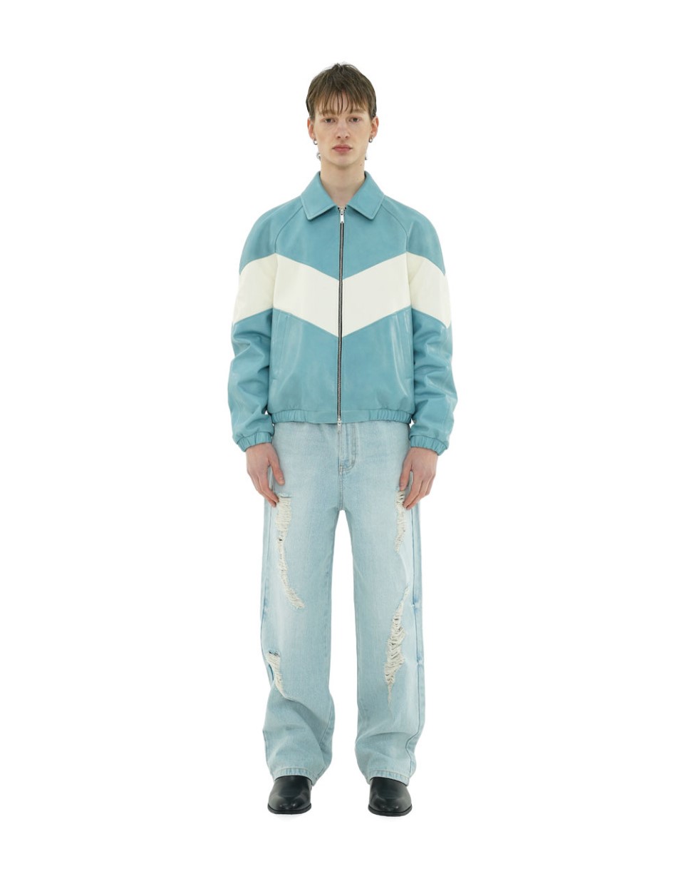 상품명: 레이싱 투웨이 봄버 재킷 / 램스킨 (스카이 블루)