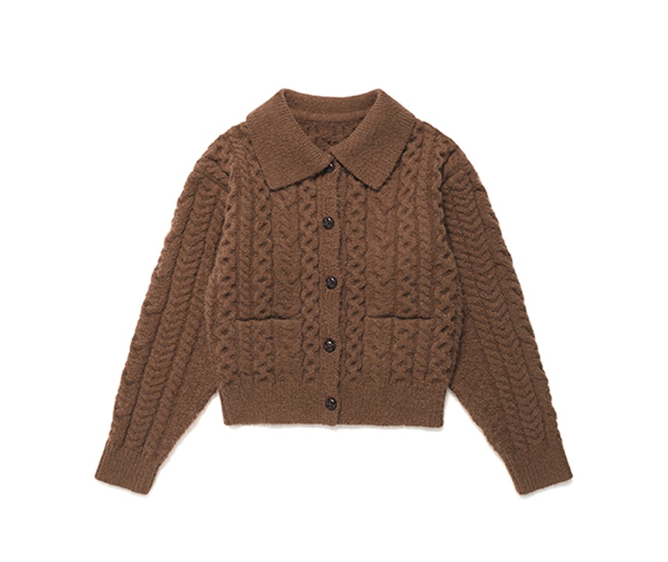 상품명: CABLE COLLAR KNIT CARDIGAN BROWN