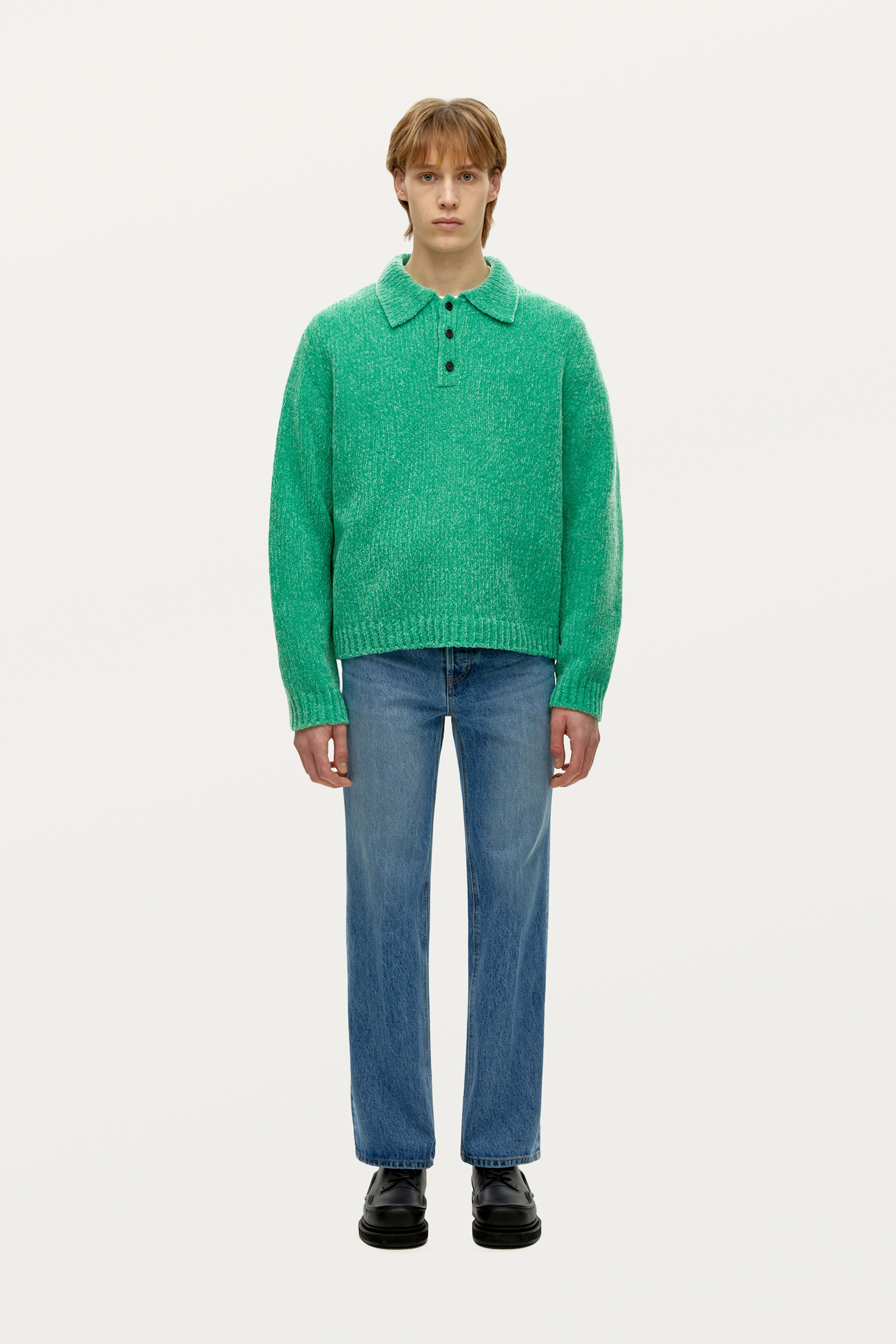 그린 울 셔닐 카라 넥 니트 - 솔리드옴므 공식 온라인 스토어