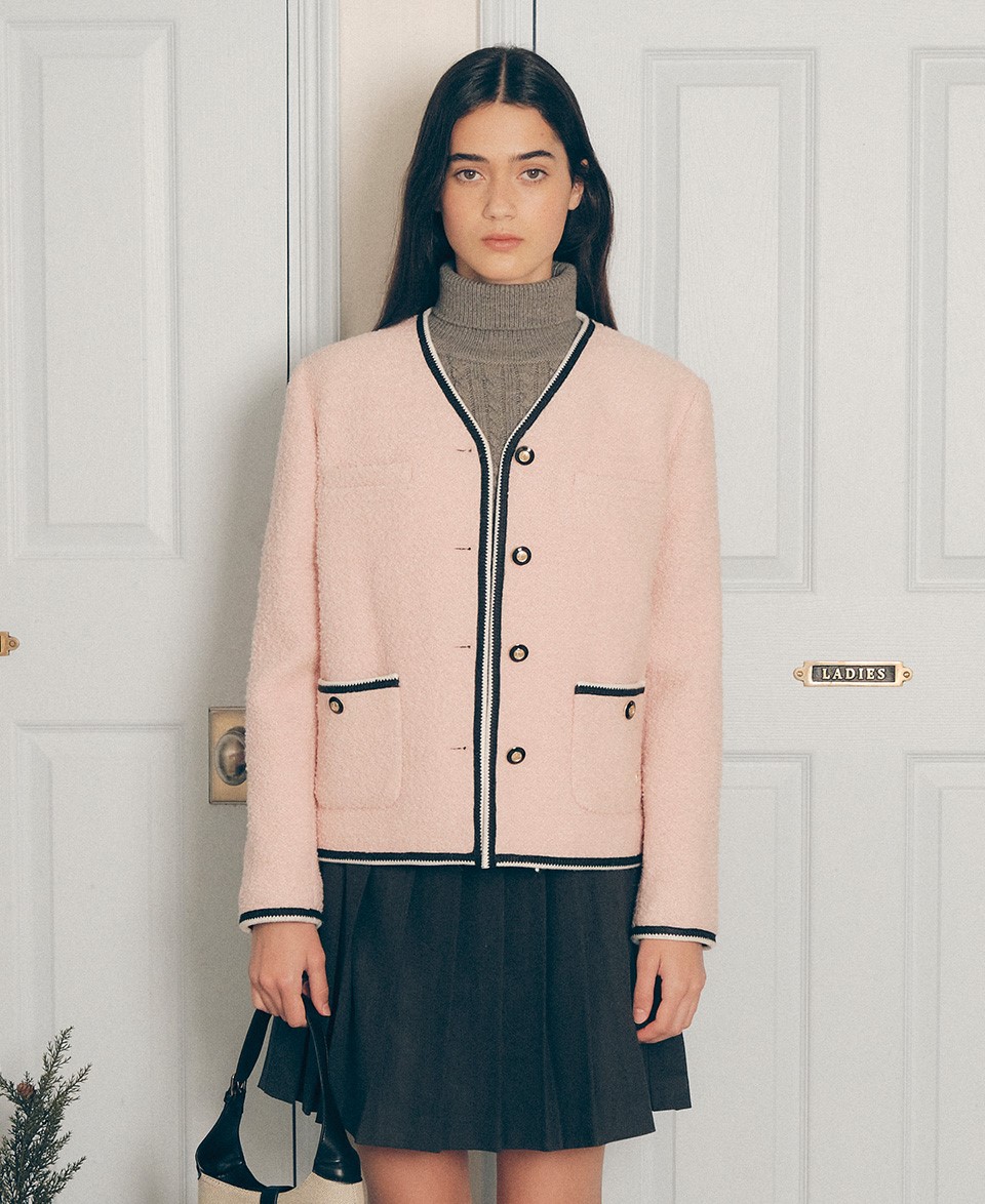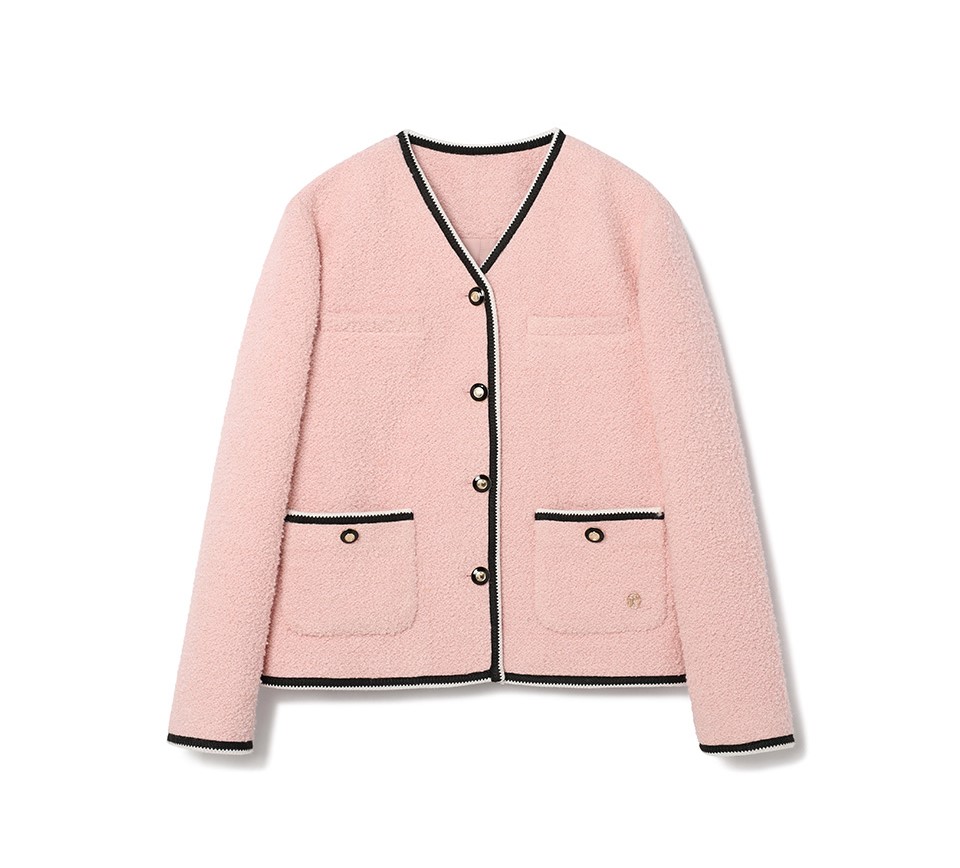 로라로라 V NECK GOLD BUTTON JACKET PINK는 겨울철 당신의 패션을 한층 더 업그레이드해줄 특별한 핑크 골드 버튼 재킷입니다.