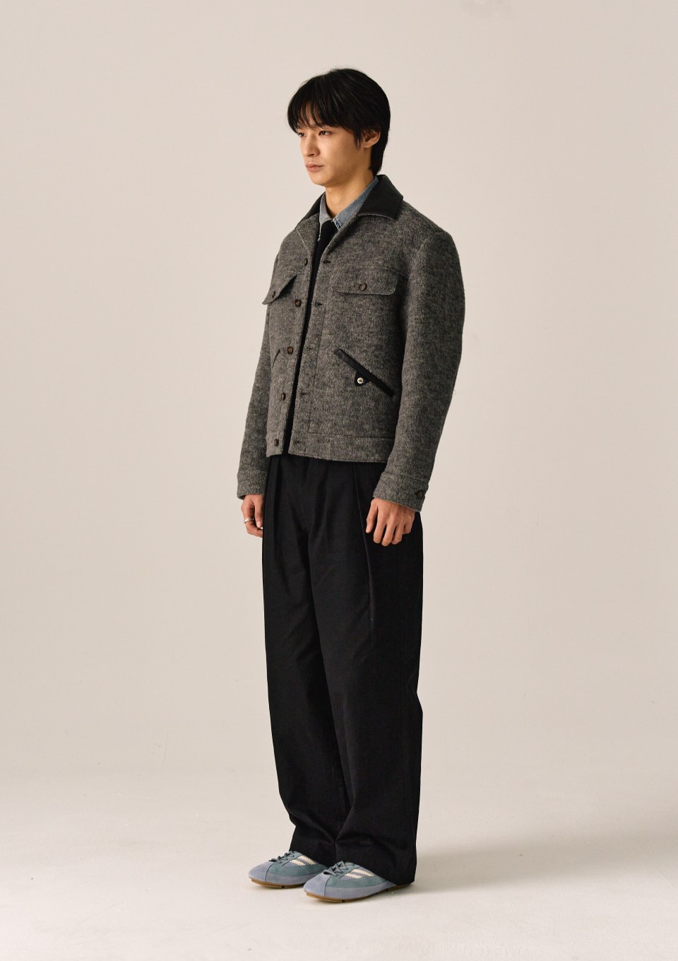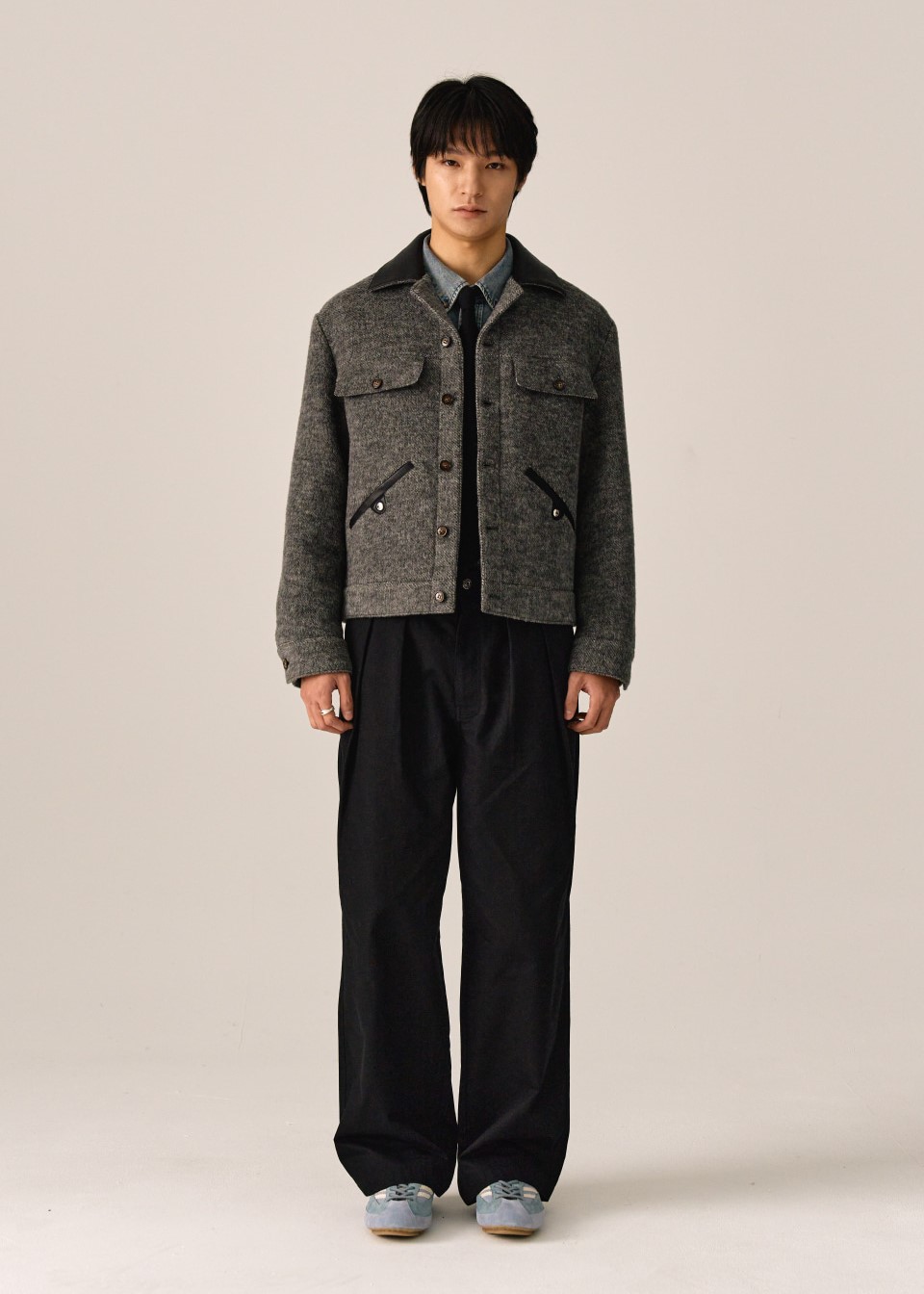 상품명: 헤어리 울 블렌드 트러커 자켓 클래식 차콜
